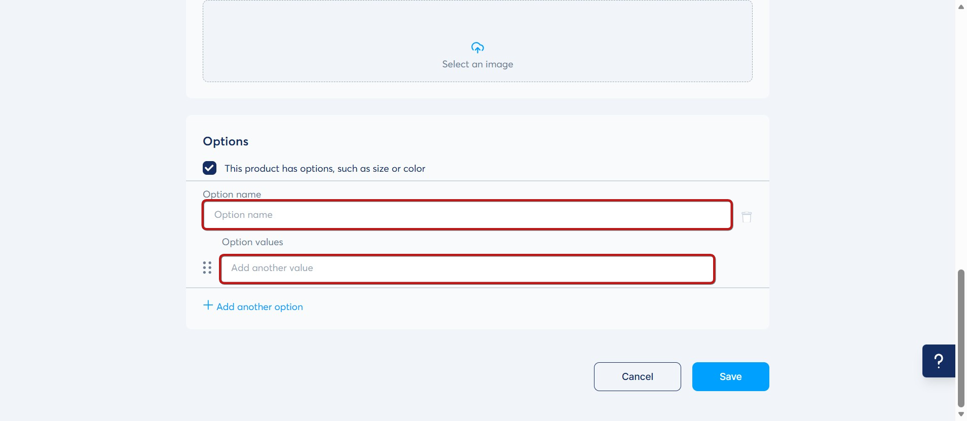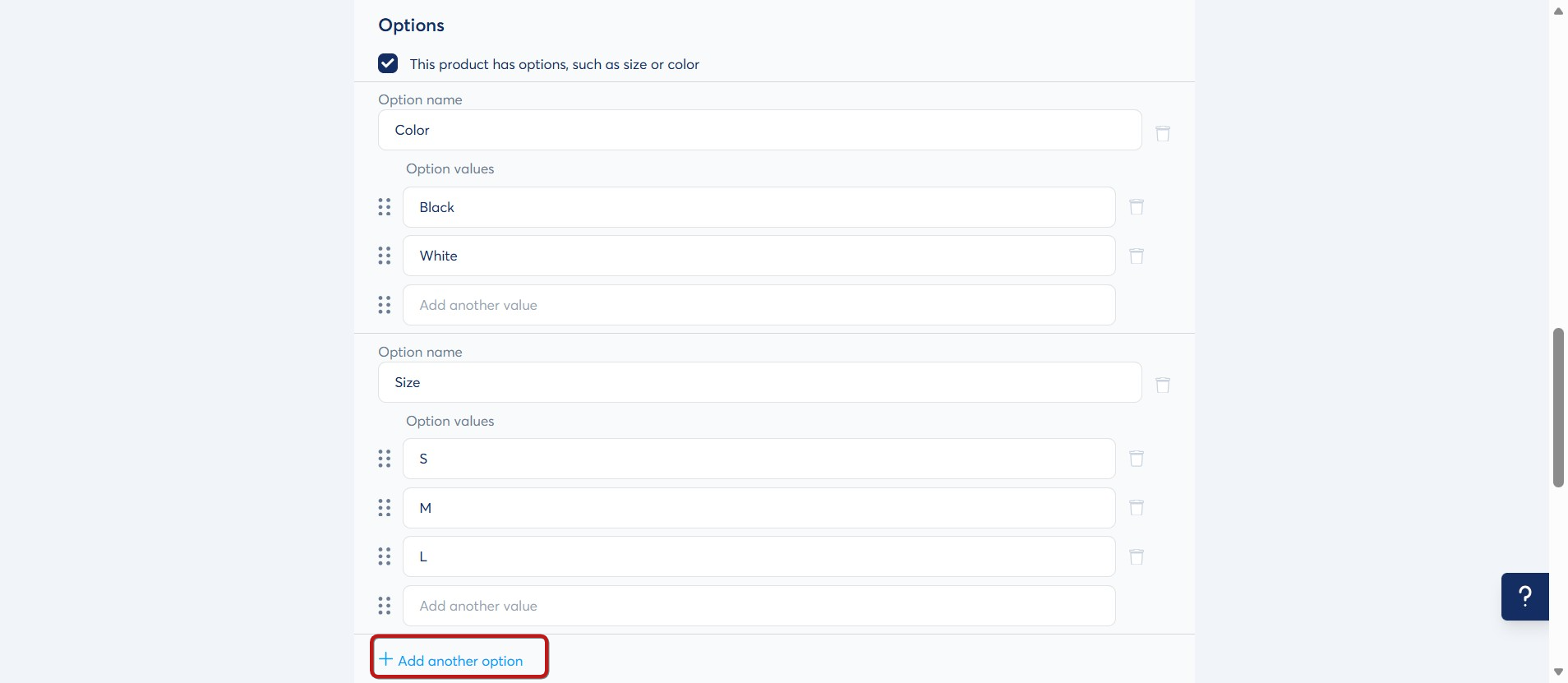 Щоб створити опцію для вашого продукту, ви повинні створити її назву та значення.