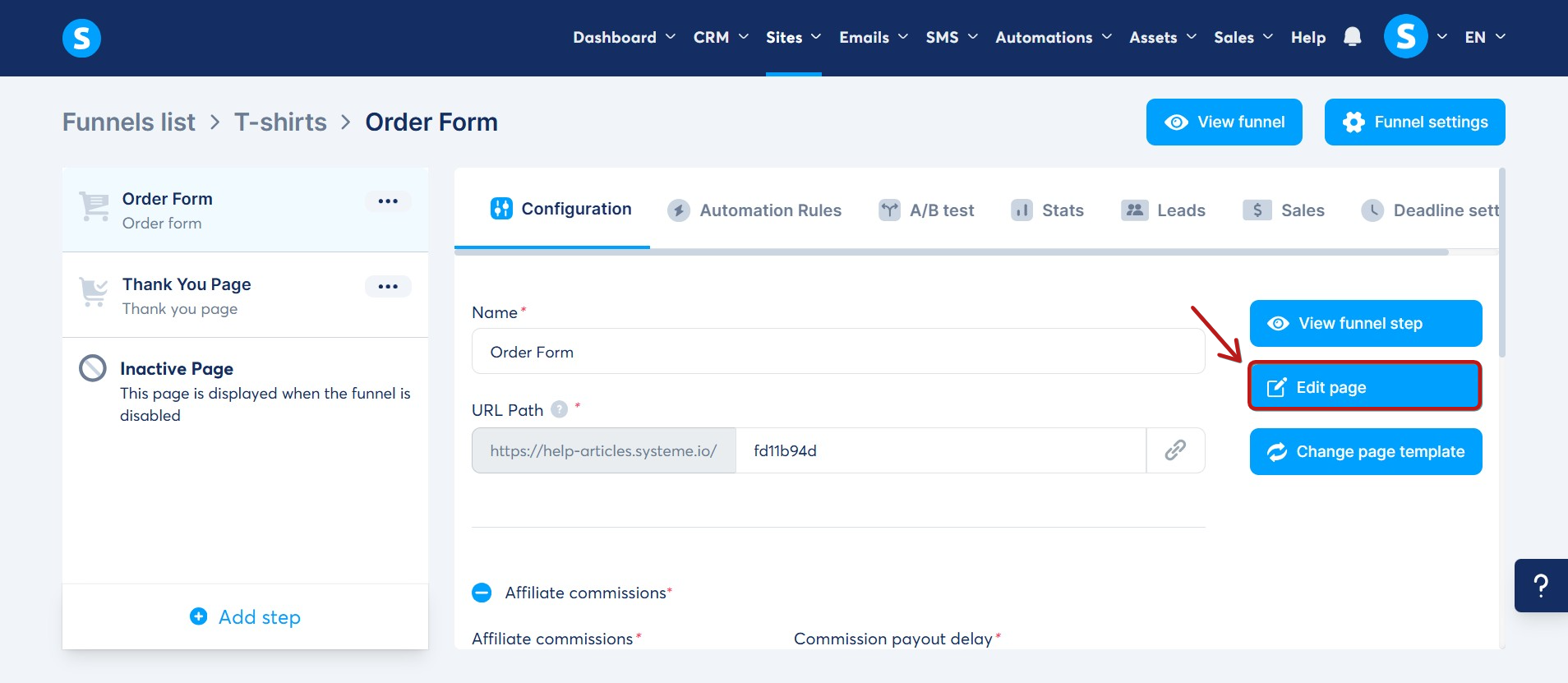 На тій самій сторінці натисніть Редагувати сторінку, щоб отримати доступ до редактора форми замовлення.