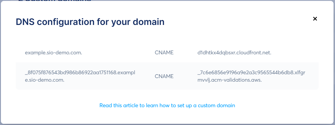 У цьому прикладі ми підключимо субдомен example.sio-demo.com до systeme.io