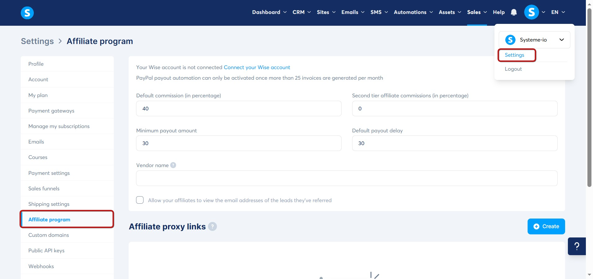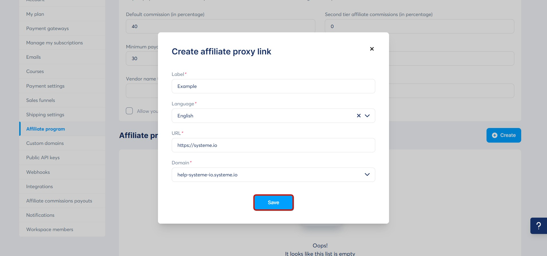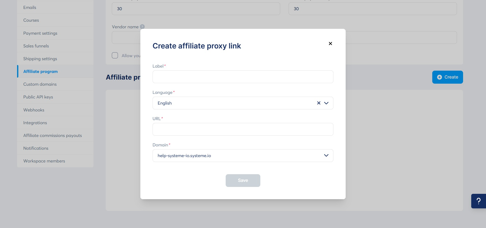 Створення та використання проксі-посилання афіліата дозволяє прикріпити ідентифікатор афіліата до зовнішньої сторінки, яка не розміщена на systeme.io.