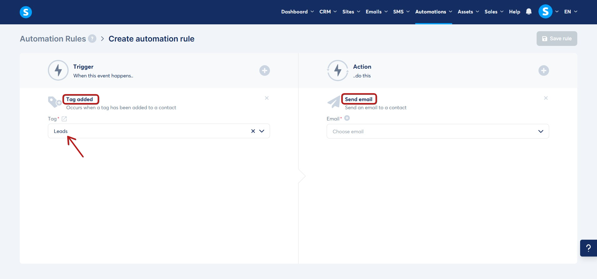 Для цього створіть правило автоматизації з тригером Тег додано та виберіть дію "Надіслати електронний лист".