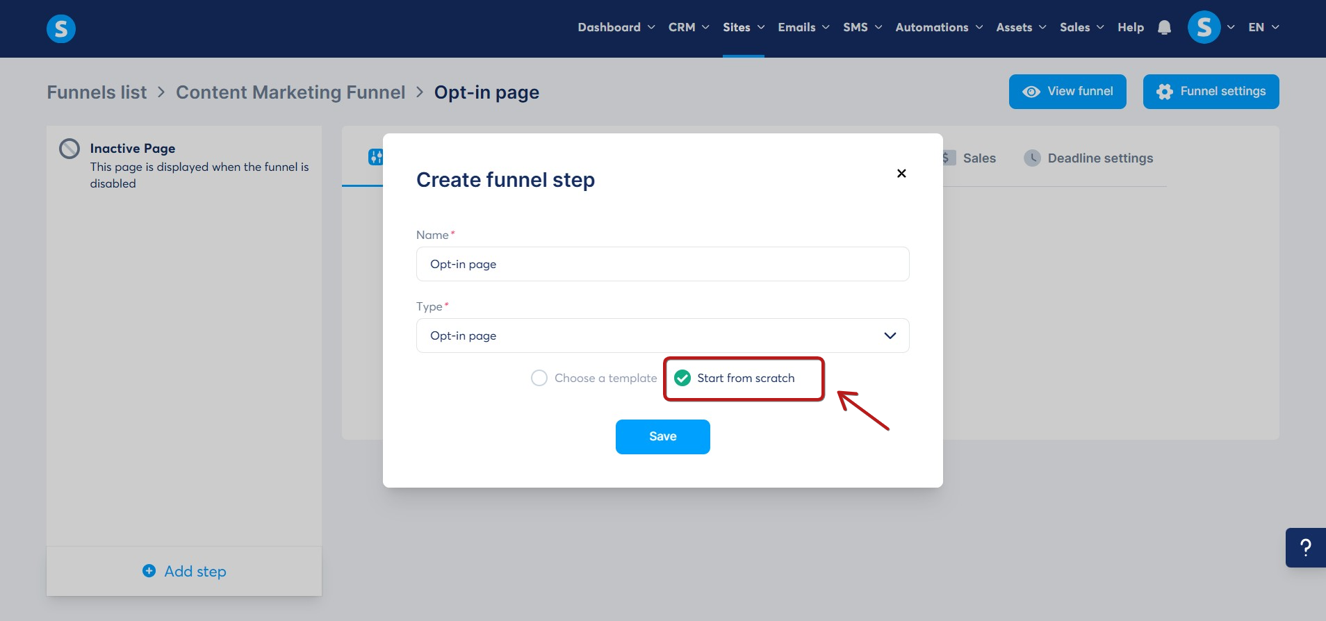 Після переходу до вашої воронки натисніть кнопку Додати крок, щоб створити сторінку для вашої воронки.