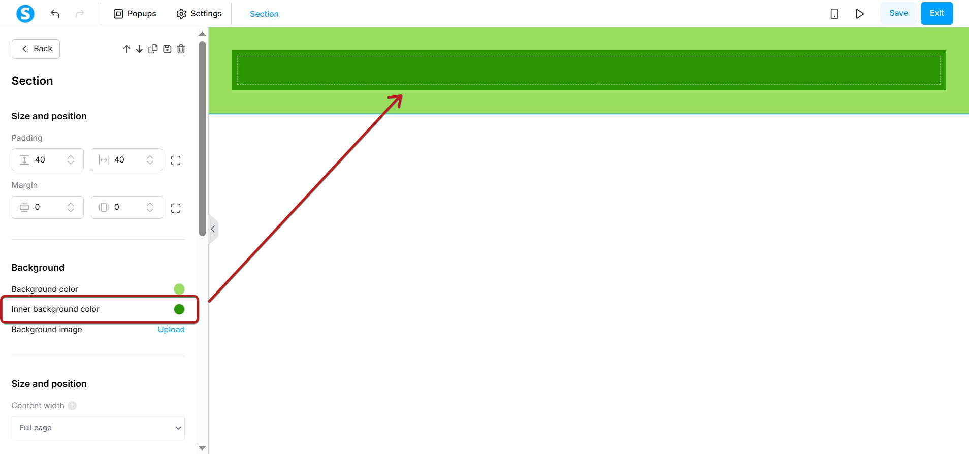 - Секції: це основні будівельні блоки вашої сторінки. Ви починаєте з додавання секцій, а потім розміщуєте всередині них рядки (стовпці) та елементи.